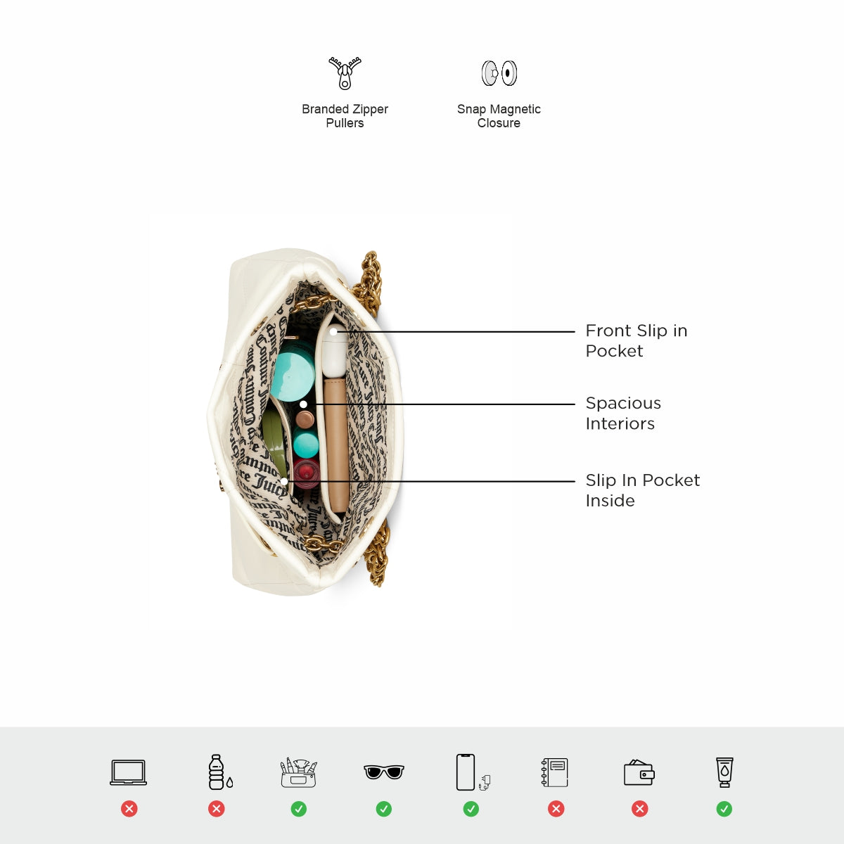 From minimalist designs to bold patterns, Juicy Couture offers a variety of options. Matte finishes add a sophisticated touch, while metallic accents and logo embellishments provide a modern twist. These bags are more than accessories—they're statements.